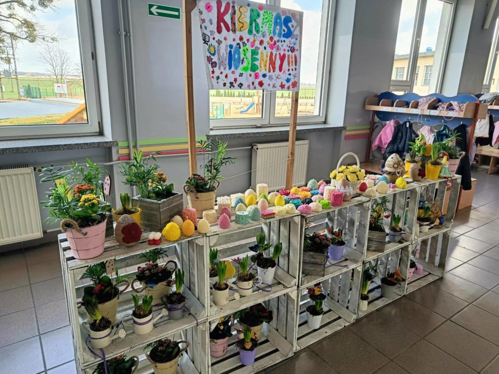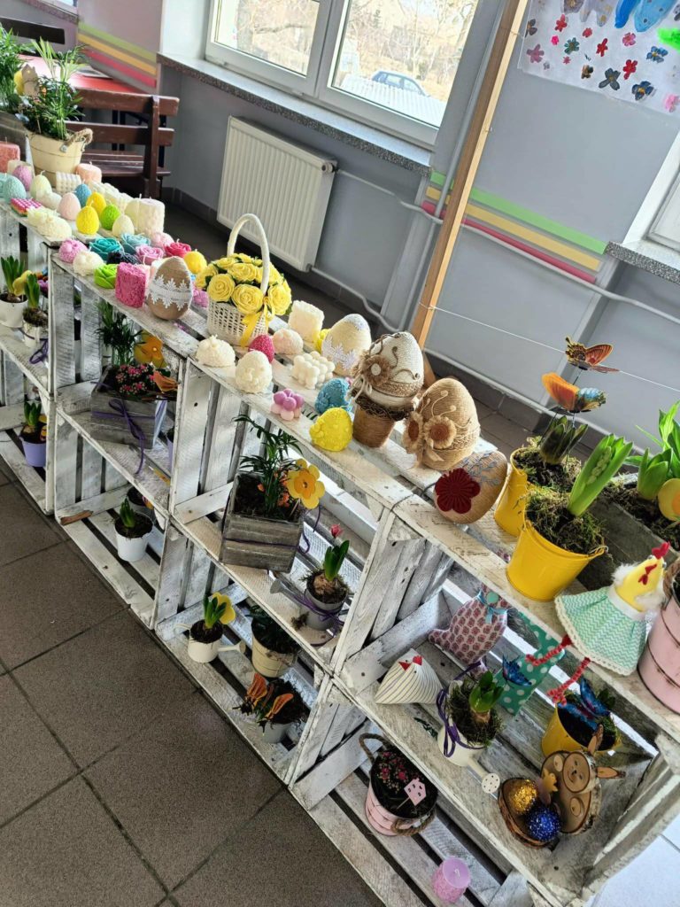 Podczas kiermaszu będzie można kupić ozdoby wiosenne przygotowane przez uczniów.![]()