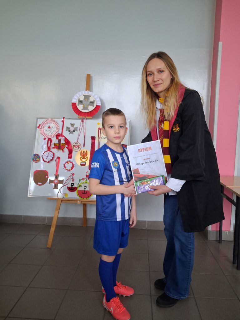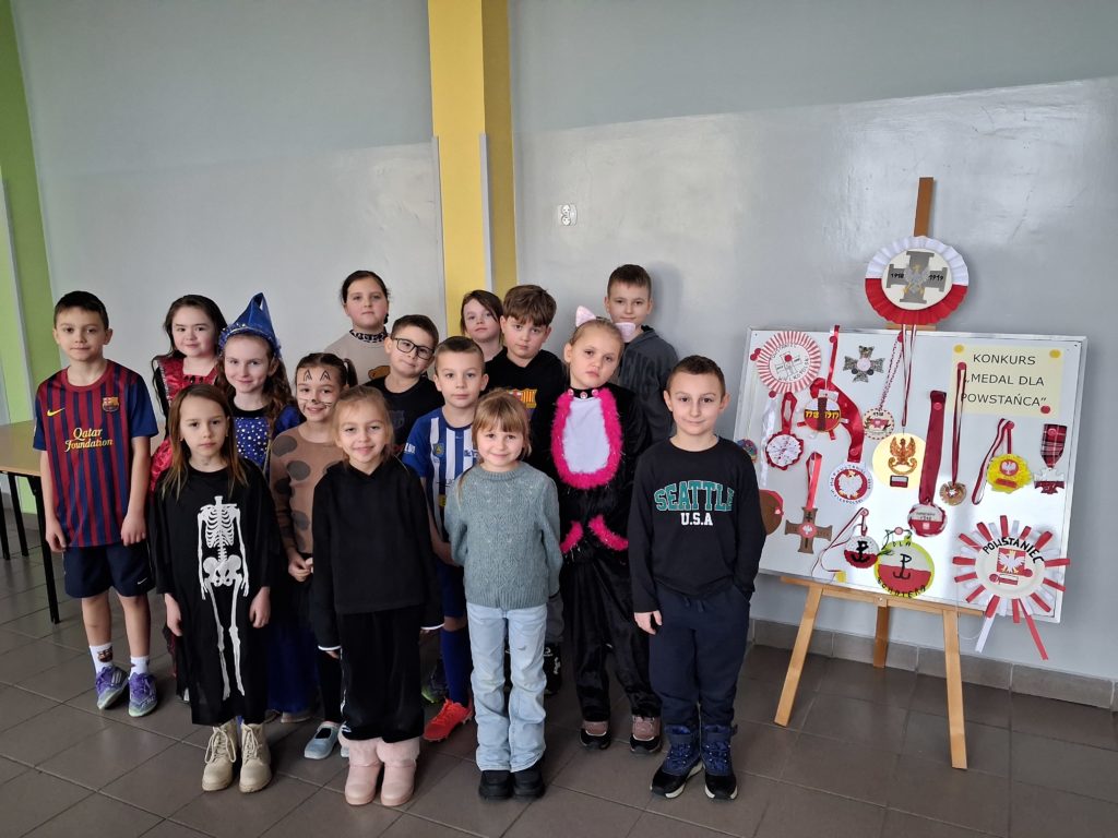 Z okazji 55. rocznicy nadania naszej szkole im. Powstańców Wielkopolskich został zorganizowany rodzinny konkurs „Medal dla powstańca”, którego celem było oddanie szacunku i hołdu powstańcom oraz upamiętnienie ich odwagi i poświęcenia. Zadaniem uczestników było wykonanie przestrzennego medalu w wybranej przez siebie technice. Jury w składzie: E. Zawodna- nauczyciel plastyki oraz B. Bil-Gurzęda- nauczyciel języka polskiego i historii biorąc pod uwagę pomysłowość, estetykę wykonania oraz poprawność historyczną zdecydowało o przyznaniu pierwszego miejsca ex aequo trzem uczniom: Antoniemu Łykowskiemu, Bartoszowi Marciniakowi oraz Ryszardowi Błaszczykowi. Gratulujemy wszystkim uczestnikom, a w szczególności zwycięzcom. Dziękujemy za udział w konkursie.