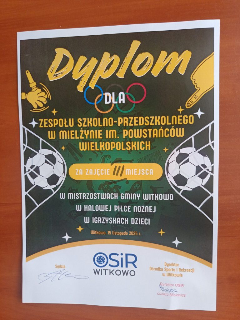 Wraz z naszymi nauczycielami w-fu braliśmy udział w Mistrzostwach Gminy Witkowo w Halowej Piłce Nożnej w Igrzyskach Dzieci,gdzie zajęliśmy III miejsce.💪