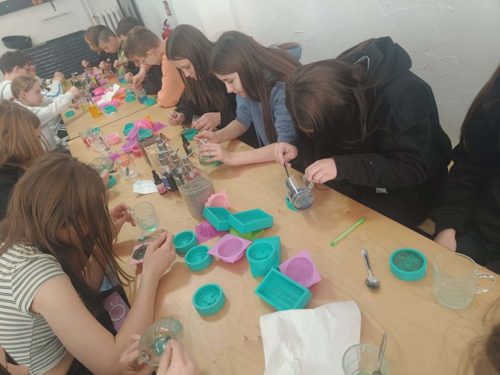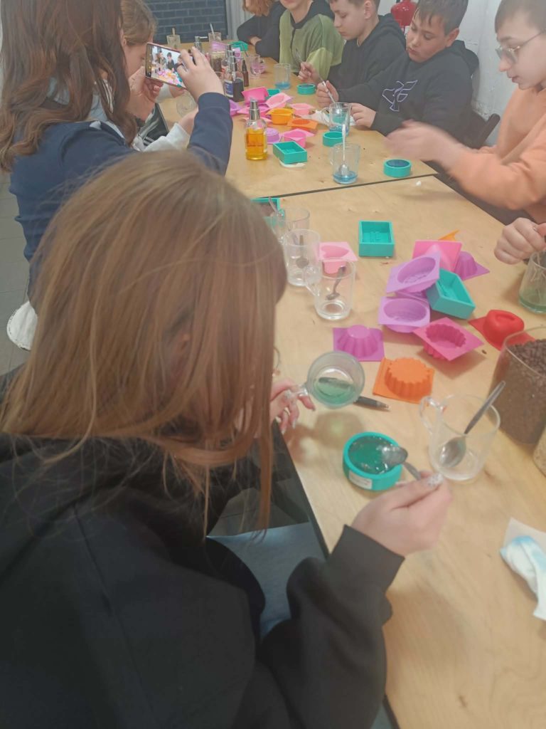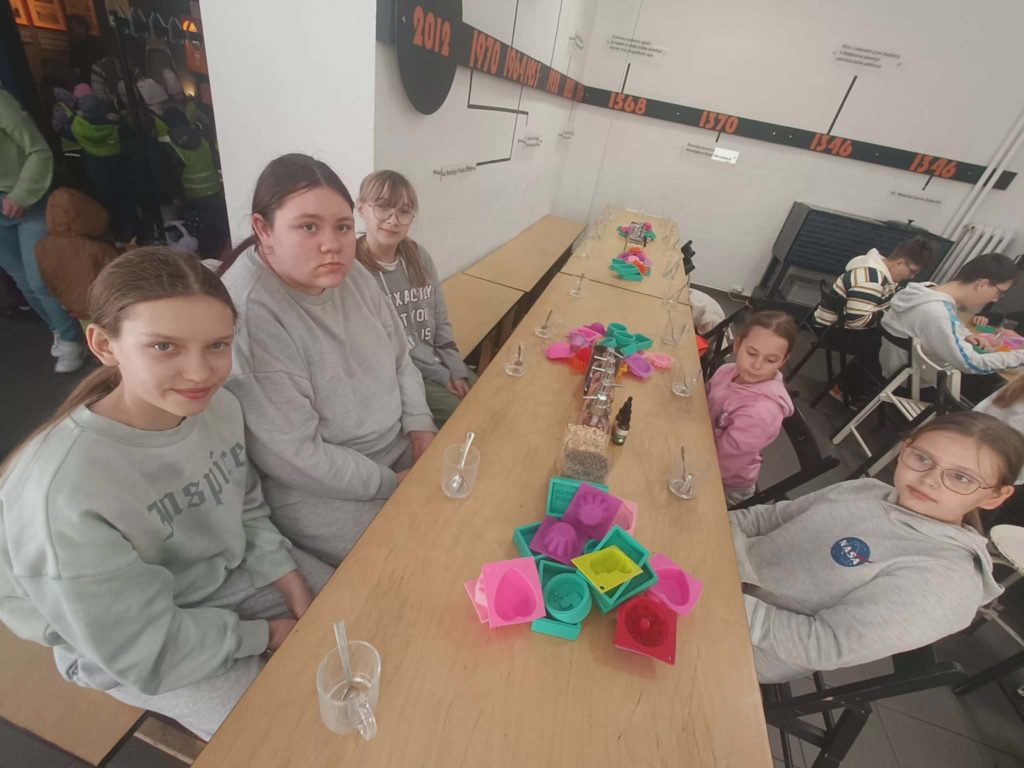 Dnia 9 kwietnia 2026 r. uczniowie z klas 4-7 brali udział w wycieczce do Bydgoszczy. Uczestnicy wyjazdu idąc do Muzeum Mydła i Historii Brudu podziwiali uroki starego miasta i zrobili sobie wspólne zdjęcie nad rzeką Brdą. Następnie w muzeum wybrali się w podróż przez 5000 lat historii higieny. Ponadto, brali udział w warsztatach tworzenia mydełek i samodzielnie komponowali mydła z zapachami i dodatkami. Następnie, pojechaliśmy do Pixel XL gdzie nasi uczniowie przenieśli się do świata analogowej zabawy na cyfrowym poziomie, w którym słowo „nuda” nie istnieje. W Pixel XL sprawdzili refleks, pamięć, sprawność ruchową i logiczne myślenie, a przy tym było duuuużo śmiechu zabawy i jeszcze więcej adrenaliny.