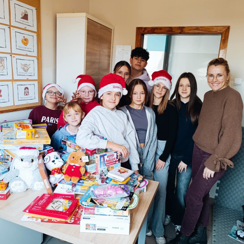 Nasza szkoła wzięła udział w zbiórce prezentów dla dzieci z oddziału onkologii i hematologii w Szpitalu Klinicznym im. Karola Jonschera w Poznaniu.