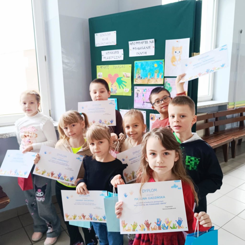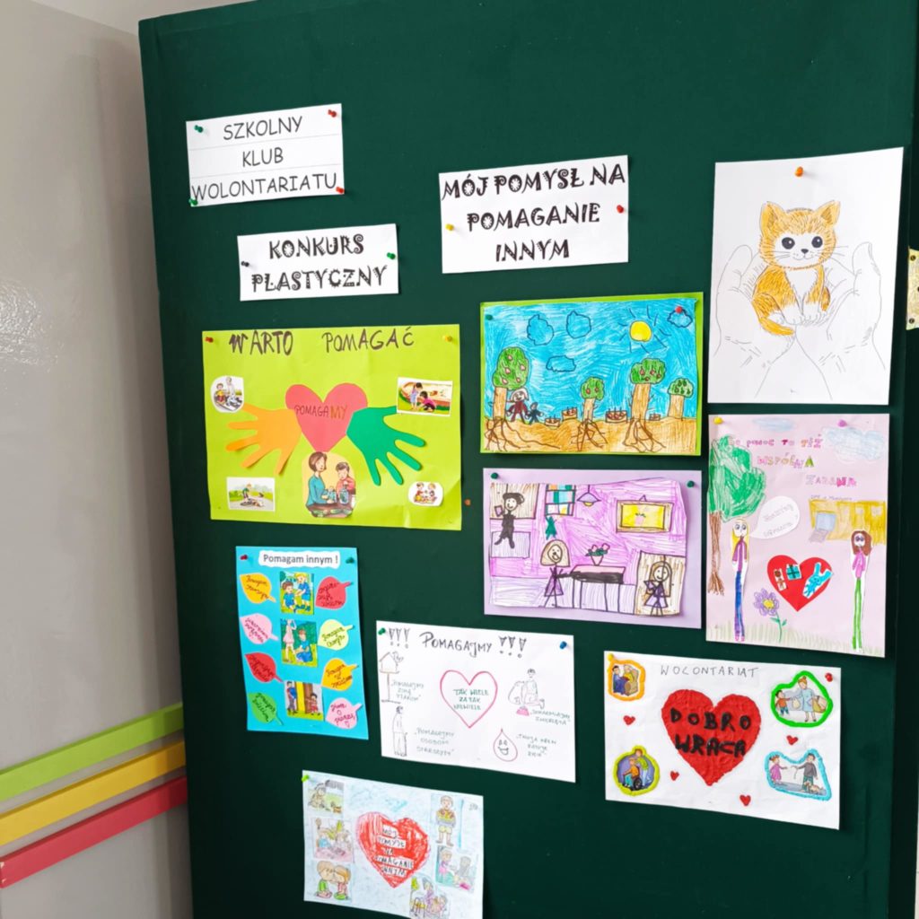 W ramach obchodów Międzynarodowego Dnia Wolontariusza, który przypadał na 05.12.2025 r., SZKOLNY KLUB WOLONTARIATU ogłosił konkurs plastyczny na PLAKAT pn. „Mój pomysł na pomaganie innym”, którego celem było szerzenie idei wolontariatu oraz zachęcenie do niesienia pomocy potrzebującym.