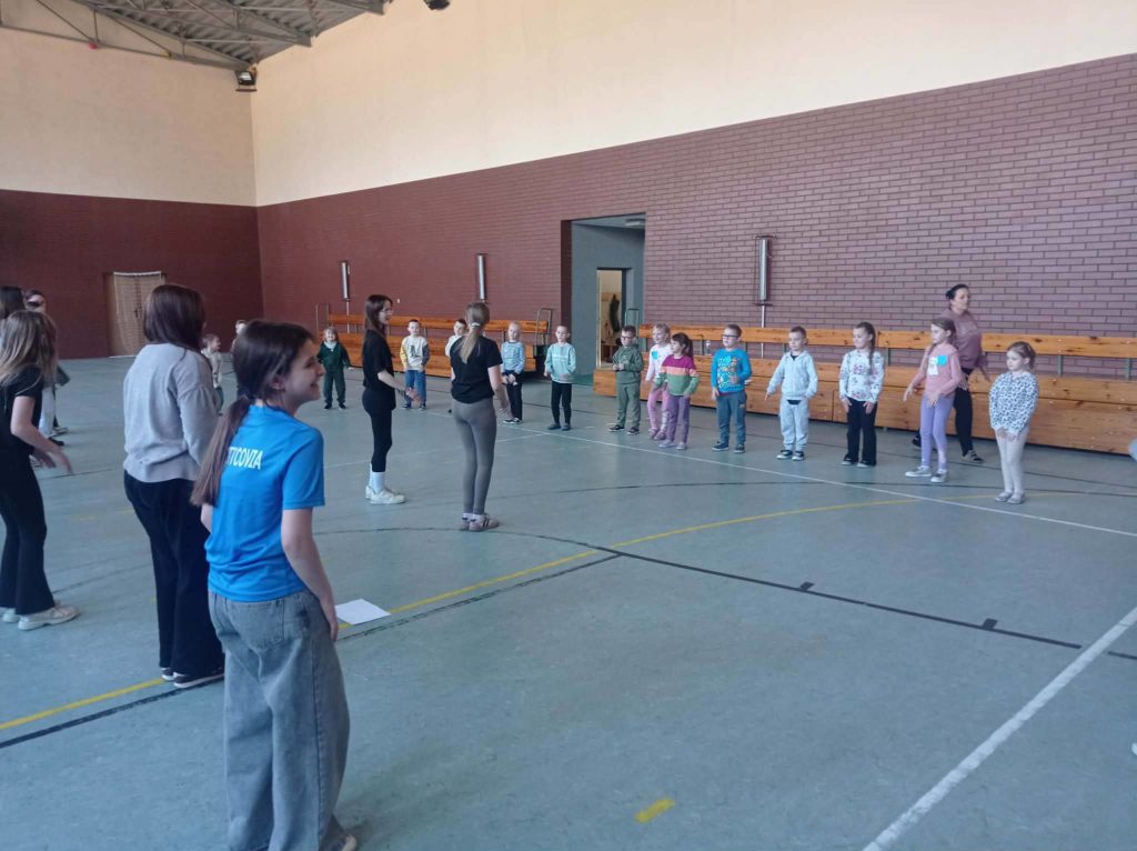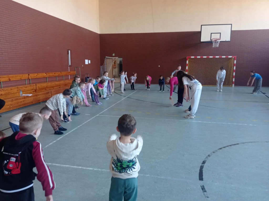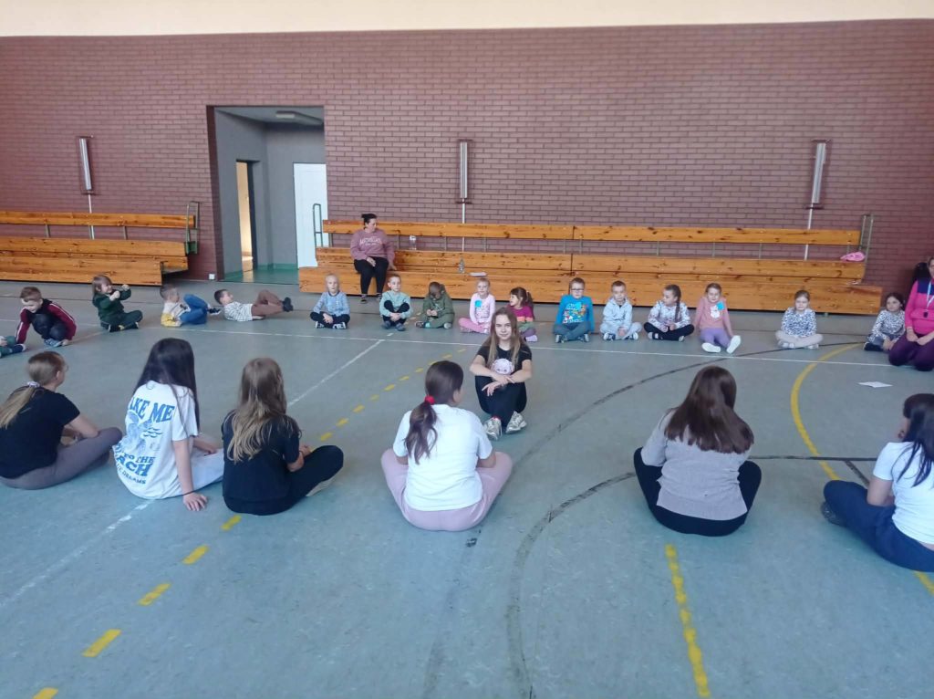 Uczennice kl.5i6 na lekcjach wychowania fizycznego realizowały ogólnopolski projekt edukacyjny „Trzymaj Formę”, zapraszając na lekcję grupę przedszkolną- „Bystrzaków”.