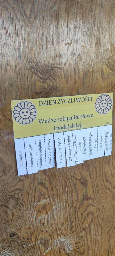 Oto nasza fotorelacja z Tygodnia Przeciwdziałania Przemocy Rówieśniczej w szkole podstawowej oraz Tygodnia Budowania Relacji w przedszkolu. W ramach działań zorganizowano m.in. Dzień Życzliwości i Miłych Słów, przygotowano gazetkę informacyjną, uczniowie wspólnie z nauczycielami i pedagogiem przygotowali Aleję Dobrych Słów oraz Mural Pozytywnych Myśli.