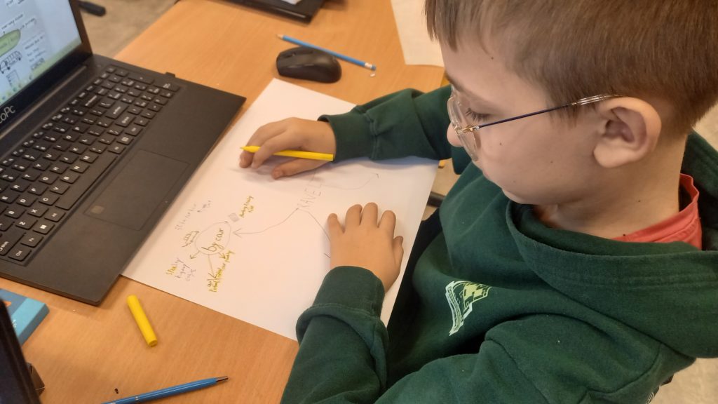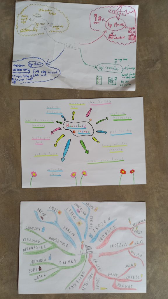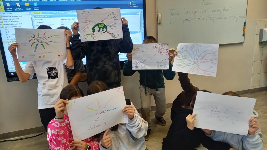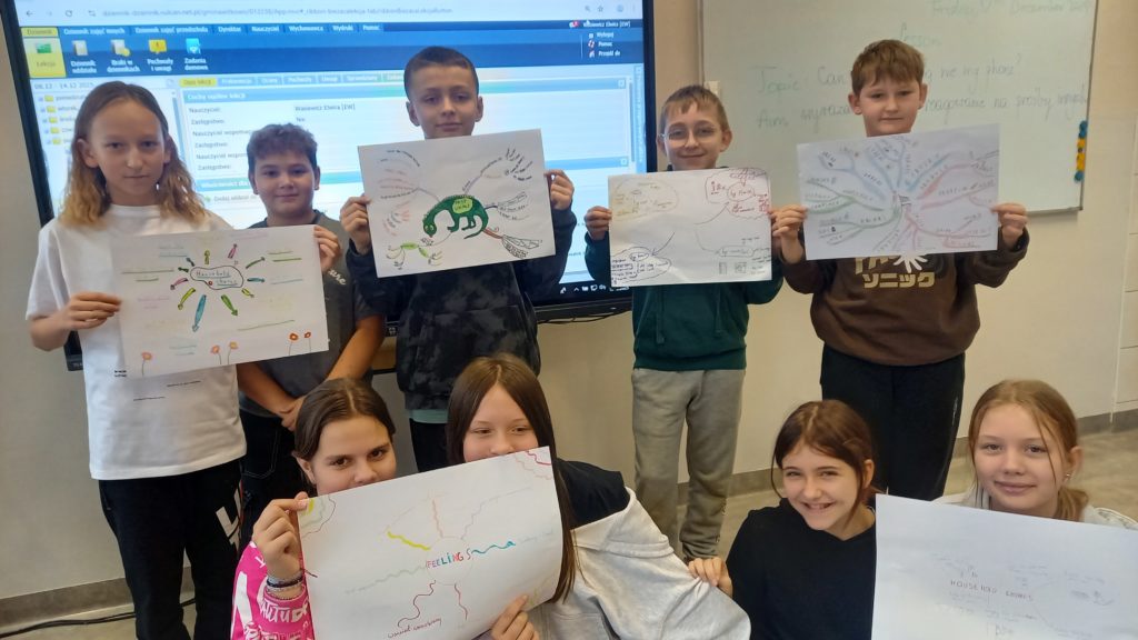 Uczniowie na zajęciach stworzyli swoje własne mapy myśli na podstawie słownictwa i zagadnień gramatycznych z języka angielskiego.