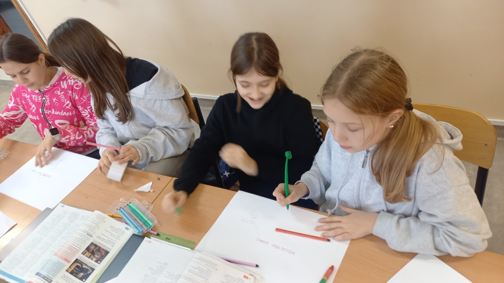 Uczniowie poznali czym są fiszki i jakie są ich rodzaje. Rozmawiali o tym jak zwykle uczą się słówek, definicji oraz dat z historii. Następnie uczniowie pracując w parach stworzyli swoje własne fiszki do nauki słownictwa z języka angielskiego z kategorii owoce, warzywa, pogoda oraz słowa związane z Halloween.